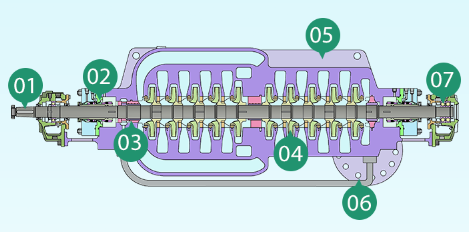 BMA型石油化工流程泵為臥式、多級(jí)、首級(jí)雙吸或單吸、水平軸向剖分、兩端支撐離心泵,它是根據(jù)API610標(biāo)準(zhǔn)要求設(shè)計(jì),BB3泵型。其總體采用對(duì)稱(chēng)葉輪布置形式軸向力自平衡,減少了平衡機(jī)構(gòu)設(shè)置的故障率。泵進(jìn)出口均位于泵體下部,在維護(hù)檢修過(guò)程中無(wú)需移動(dòng)管線就可以拆卸設(shè)備。