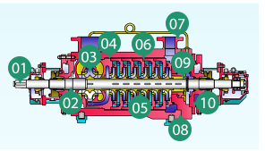 9.平衡結(jié)構(gòu):采用鼓-盤-鼓聯(lián)合作用的平衡機構(gòu),在有效避免“閃蒸”現(xiàn)象的同時,大大提高軸承使用壽命及運行穩(wěn)定性。